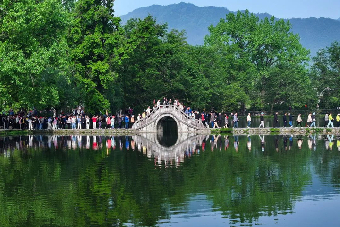 2024年4月24日,安徽黄山,众多游客走进黟县宏村,感受诗情画意的乡村美景。今年以来,“黄山市景区免门票开放日”,包括黄山风景区、西递和宏村等旅游景区,对提前预约的游客免门票开放。