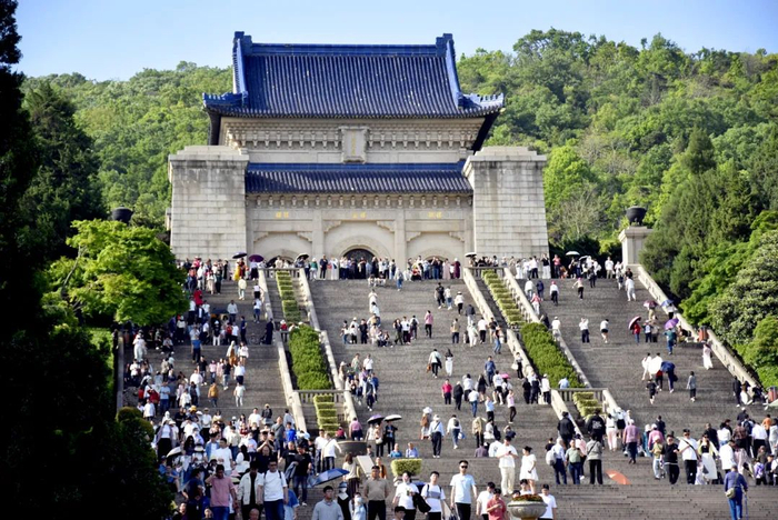 2024年4月24日,南京,“五一”假期临近,中山陵景区迎来客流高峰。