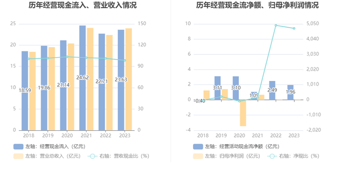 2023年,公司营业收入现金比为98.60%,净现比为4753.80%。