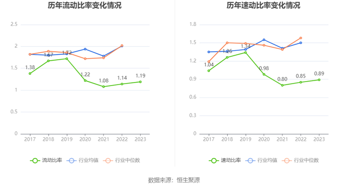 2023年,公司流动比率为1.19,速动比率为0.89。
