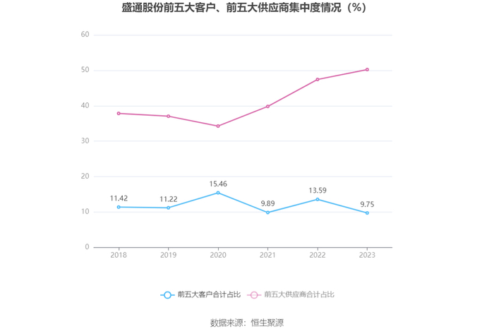报告期内,公司前五大客户合计销售金额2.34亿元,占总销售金额比例为9.75%,公司前五名供应商合计采购金额6.88亿元,占年度采购总额比例为50.23%。