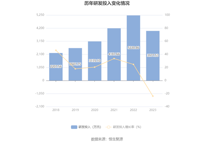 2023年全年,公司研发投入金额为3977.53万元,同比下降23.81%;研发投入占营业收入比例为1.66%,相比上年同期下降0.67个百分点。此外,公司全年研发投入资本化率为4.61%。