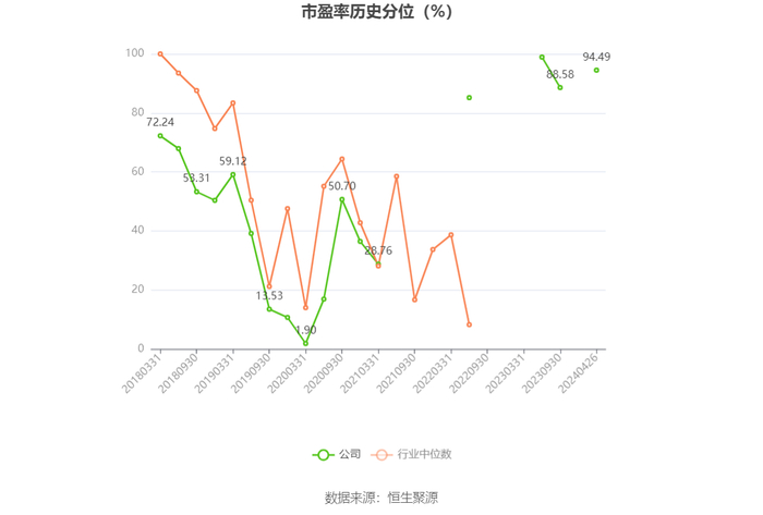 市盈率为负时,不显示当期分位数,会导致折线图中断。