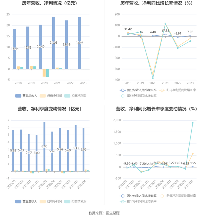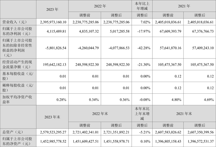 2023年,公司经营活动现金流净额为1.96亿元,同比下降21.30%;筹资活动现金流净额-1.01亿元,同比增加8346.23万元;投资活动现金流净额-5777.04万元,上年同期为-3262.92万元。
