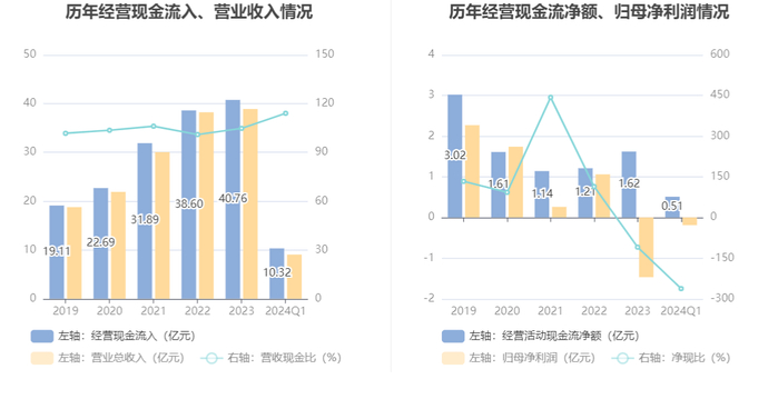 2024年第一季度,公司营业收入现金比为114.05%,净现比为-262.62%。