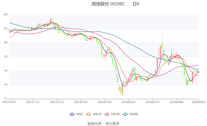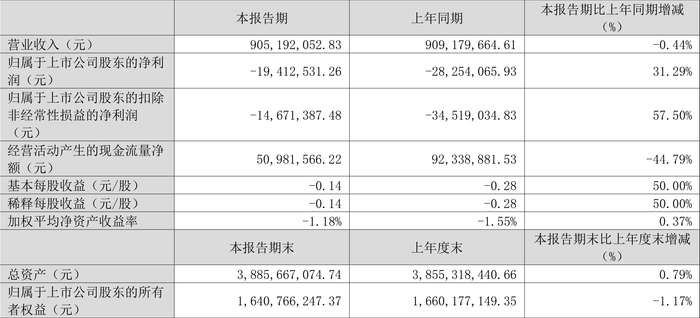 中证智能财讯 湘佳股份(002982)4月27日披露2024年一季报。2024年第一季度,公司实现营业总收入9.05亿元,同比下降0.44%;归母净利润亏损1941.25万元,上年同期亏损2825.41万元;扣非净利润亏损1467.14万元,上年同期亏损3451.90万元;经营活动产生的现金流量净额为5098.16万元,同比下降44.79%;报告期内,湘佳股份基本每股收益为-0.14元,加权平均净资产收益率为-1.18%。
