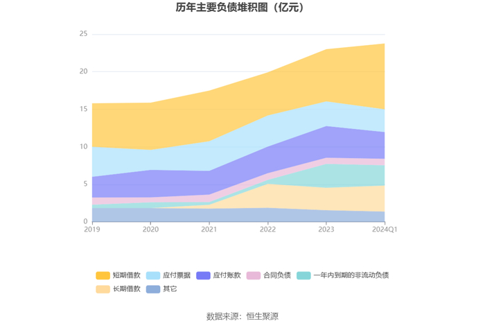 负债重大变化方面,截至2024年一季度末,公司短期借款较上年末增加26.22%,占公司总资产比重上升3.51个百分点;应付账款较上年末减少15.72%,占公司总资产比重下降1.52个百分点;长期借款较上年末增加16.43%,占公司总资产比重上升0.90个百分点;一年内到期的非流动负债较上年末减少14.86%,占公司总资产比重下降1.08个百分点。