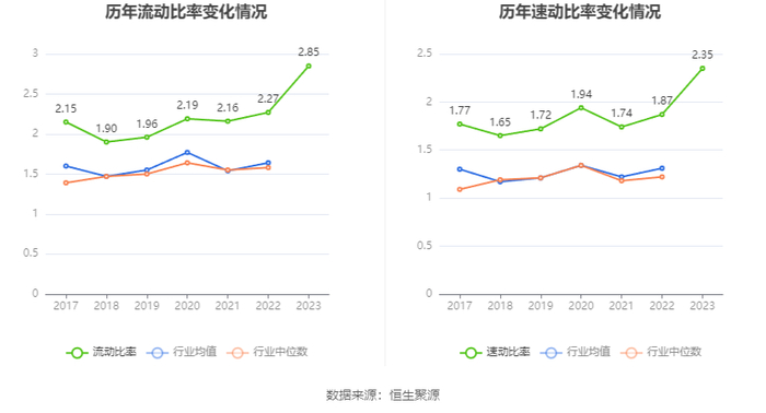 2023年,公司流动比率为2.85,速动比率为2.35。