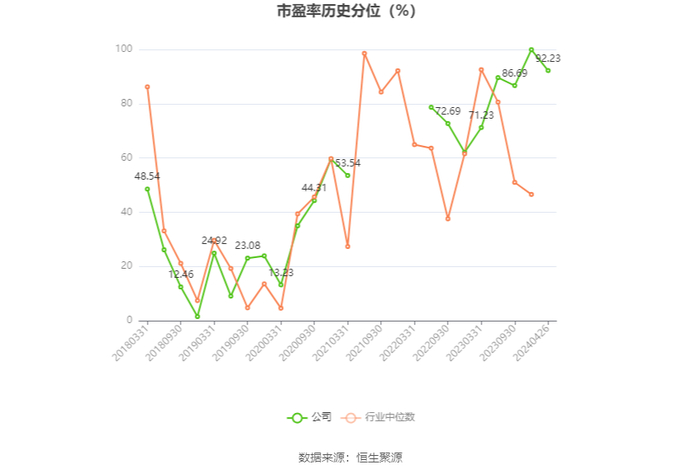 市盈率为负时,不显示当期分位数,会导致折线图中断。