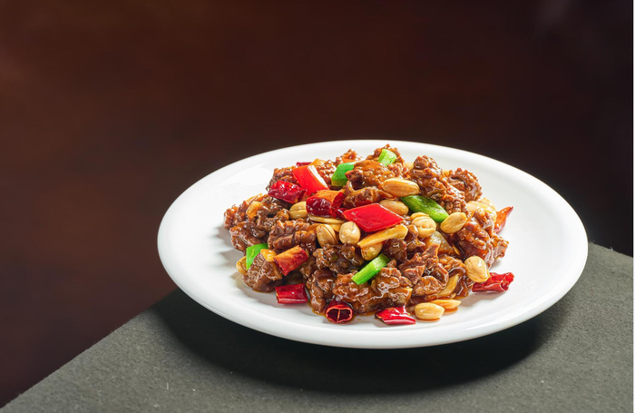 香辣鸭心是一道功夫菜,鸭心与青红椒、花生爆炒,口感紧致弹牙,香辣开胃,令人欲罢不能。新增多道创新菜,注重菜品口味的同时,突出配料营养健康,造型美观赏心悦目,将创新成果更好地展示给消费者。如葱香慢煮黄花鱼,将虾肉放置鱼腹中,取鱼之鲜、虾之甜,鲜嫩蔬菜调味垫底,淋葱油鲜上增香,黄花鱼肥,虾肉鲜甜。