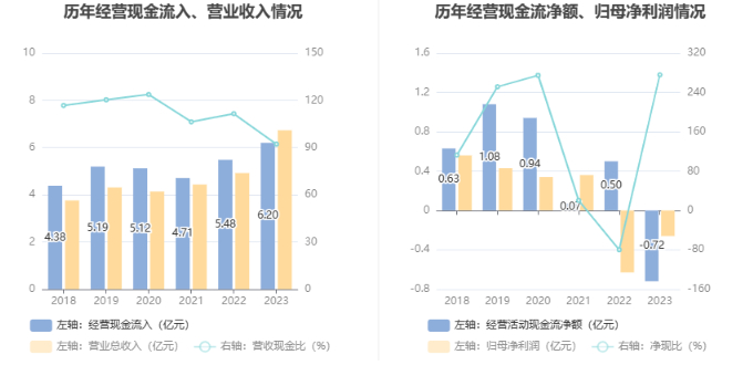 2023年,公司经营活动现金流净额为-7213.43万元,同比减少1.23亿元;筹资活动现金流净额5464.64万元,同比增加4705.55万元;投资活动现金流净额-4596.52万元,上年同期为-4339.89万元。