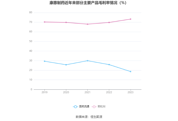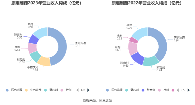 分产品看,医药流通、中药饮片、颗粒剂2023年毛利率分别为18.70%、-6.44%、73.25%。