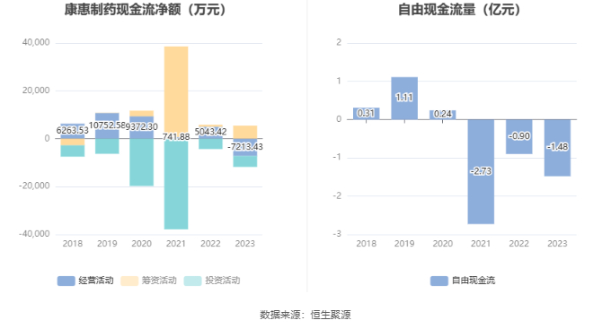 进一步统计发现,2023年公司自由现金流为-1.48亿元,上年同期为-0.90亿元。