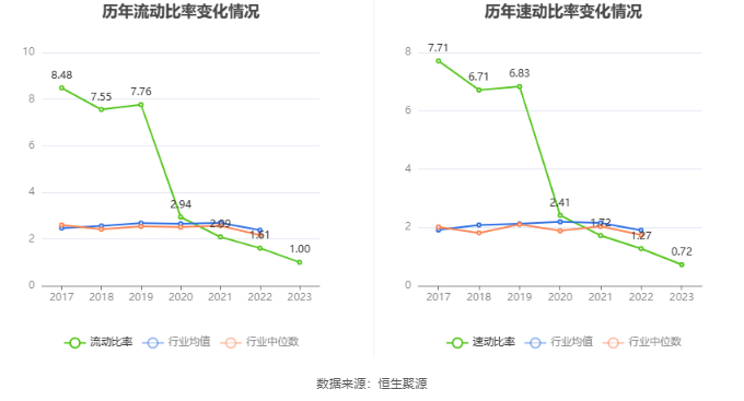 2023年,公司流动比率为1.00,速动比率为0.72。