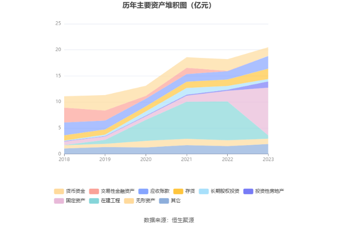 资产重大变化方面,截至2023年年末,公司在建工程较上年末减少91.73%,占公司总资产比重下降37.88个百分点;固定资产较上年末增加351.79%,占公司总资产比重上升33.60个百分点;投资性房地产较上年末增加469.15%,占公司总资产比重上升4.71个百分点;货币资金较上年末减少27.63%,占公司总资产比重下降4.44个百分点。