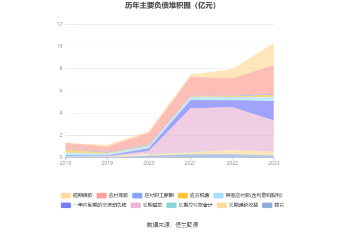 负债重大变化方面,截至2023年年末,公司短期借款较上年末增加139.20%,占公司总资产比重上升5.18个百分点;一年内到期的非流动负债较上年末增加183.90%,占公司总资产比重上升5.13个百分点;长期借款较上年末减少27.00%,占公司总资产比重下降7.46个百分点;应付账款较上年末增加66.70%,占公司总资产比重上升4.10个百分点。