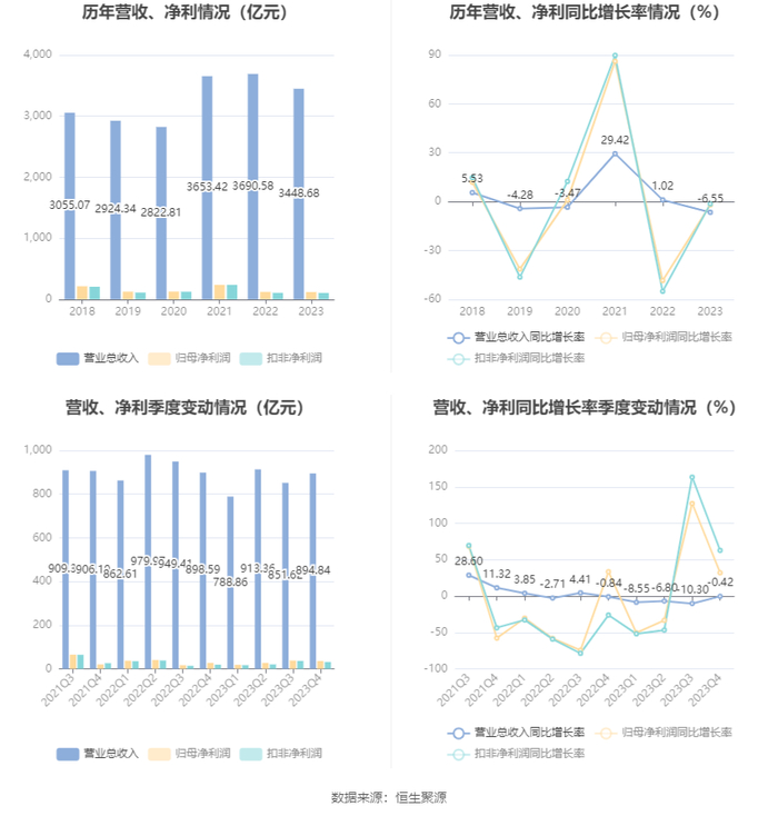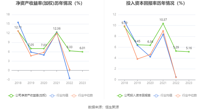 数据显示,2023年公司加权平均净资产收益率为6.01%,较上年同期下降0.32个百分点;公司2023年投入资本回报率为5.16%,较上年同期下降0.13个百分点。