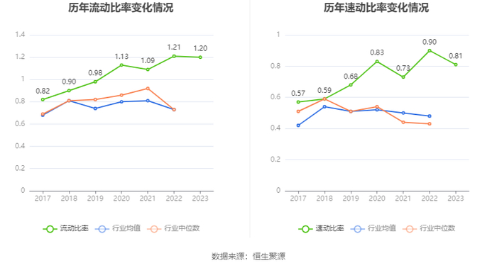 2023年,公司流动比率为1.20,速动比率为0.81。