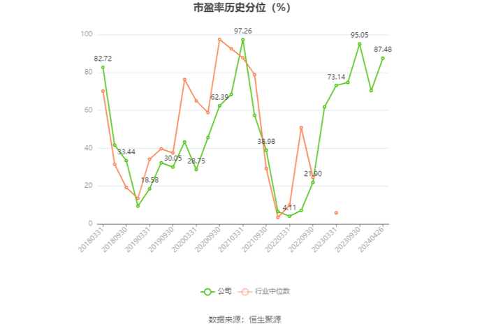 市盈率为负时,不显示当期分位数,会导致折线图中断。