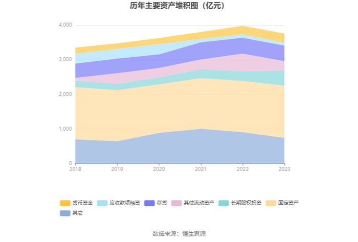 资产重大变化方面,截至2023年年末,公司其他流动资产较上年末减少46.79%,占公司总资产比重下降5.58个百分点;长期股权投资较上年末增加58.00%,占公司总资产比重上升4.71个百分点;固定资产较上年末增加1.74%,占公司总资产比重上升2.88个百分点;预付款项较上年末减少59.12%,占公司总资产比重下降1.19个百分点。