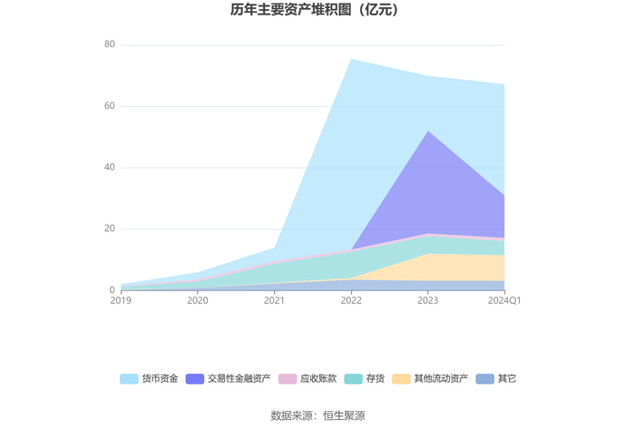 资产重大变化方面,截至2024年一季度末,公司货币资金较上年末增加103.02%,占公司总资产比重上升28.44个百分点;交易性金融资产较上年末减少58.92%,占公司总资产比重下降27.38个百分点;存货较上年末减少19.50%,占公司总资产比重下降1.33个百分点;应收账款较上年末增加23.38%,占公司总资产比重上升0.33个百分点。