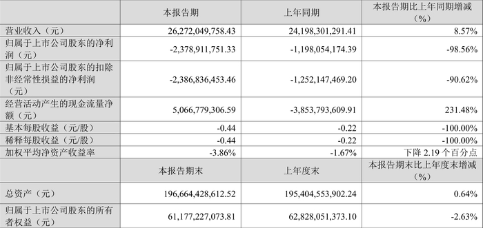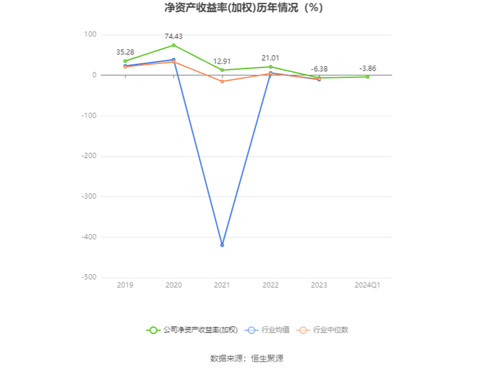 数据显示,2024年第一季度公司加权平均净资产收益率为-3.86%,较上年同期下降2.19个百分点;公司2024年第一季度投入资本回报率为-1.07%,较上年同期下降0.76个百分点。