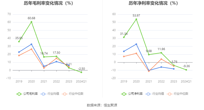 2024年第一季度,公司毛利率为-2.50%,同比下降4.38个百分点;净利率为-9.36%,较上年同期下降4.40个百分点。
