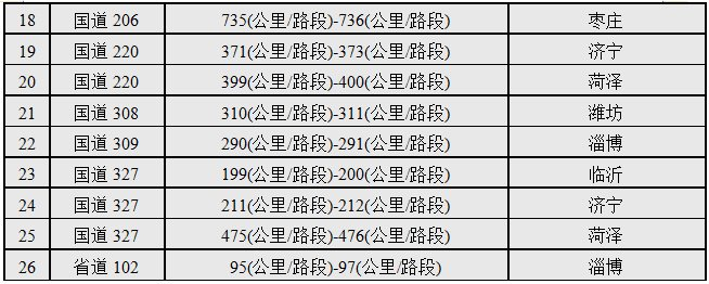 预计S29滨台高速桓台至淄博西段、S31泰新高速徂徕北立交至新泰西段、G2京沪高速郯城至归昌特大桥段、G3京台高速泰山枢纽立交至满庄段、G15沈海高速日照北至岚山段、G20青银高速青州东至周村段、G35济广高速平阴至东平段、G2001济南绕城高速济南市中至齐河东段、G0321德上高速聊城西立交至莘县北段容易发生拥堵。