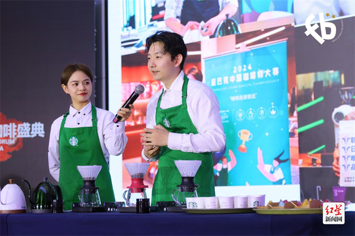 来自星巴克中西区的明星伙伴,高航Pedro、杜佳宇Cindy在现场进行了精彩的咖啡技艺展现,讲述了星巴克伙伴在咖啡专业上的热情和成长的故事,并分享了星巴克的创新之道。星巴克始终以咖啡为核心进行创新,不断提升伙伴的咖啡技艺,为顾客提供独特的星巴克体验。