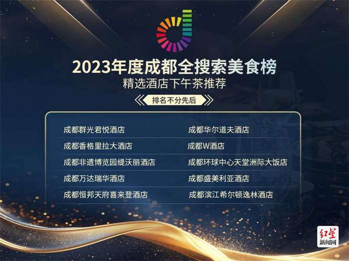 去年9月,“2023西南酒店·餐饮年度盛典”举办,“成都全搜索美食榜——酒店美食榜”启动带来全新区域探索。今日,年度权威榜单公布,最终评定了十家“2023年度成都全搜索美食榜-甄选下午茶推荐”和十家“2023年度成都全搜索美食榜-甄选酒店餐饮推荐”。