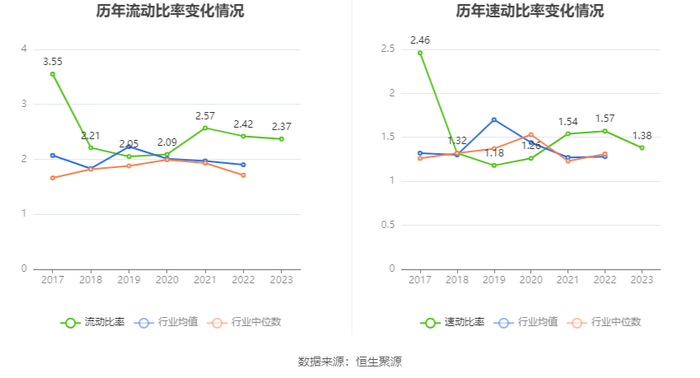 2023年,公司流动比率为2.37,速动比率为1.38。