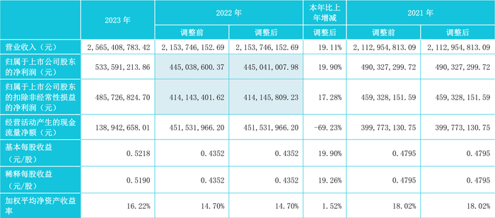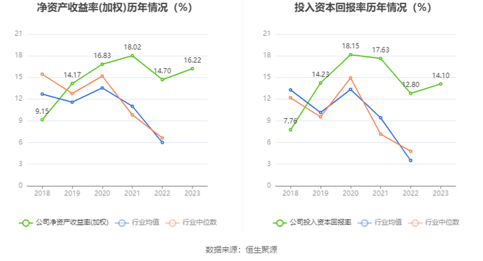 数据显示,2023年公司加权平均净资产收益率为16.22%,较上年同期增长1.52个百分点;公司2023年投入资本回报率为14.10%,较上年同期增长1.30个百分点。