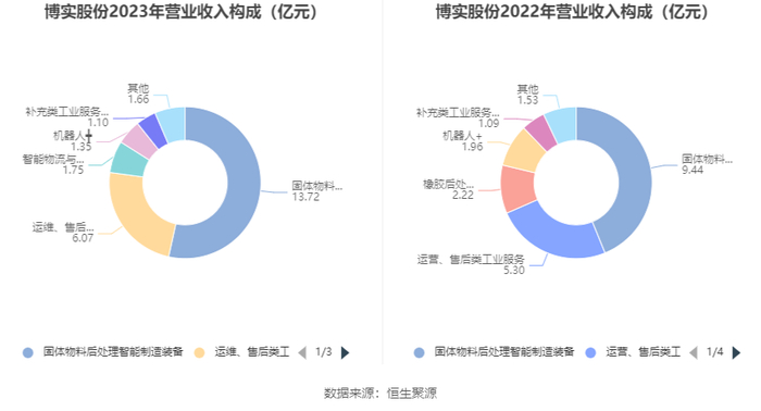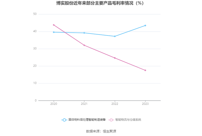 分产品看,固体物料后处理智能制造装备、运维、售后类工业服务、智能物流与仓储系统2023年毛利率分别为43.46%、26.99%、17.52%。