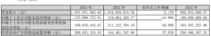 挖贝网4月26日,利君股份 近日发布2023年年度报告,报告期内公司实现营业收入1,072,671,593.65元,同比增长5.17%;归属于上市公司股东的净利润122,899,732.01元,同比下滑44.06%。