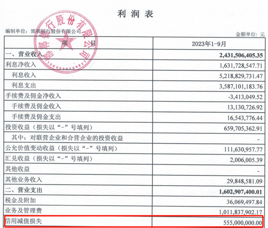 从邯郸银行2023年三季报来看,该行前三季度信用减值损失支出5.55亿元,同比增幅54.6%,已经有加快核销脚步的趋势,如果第四季度信用减值损失增长,也是影响该行净利润因素之一。