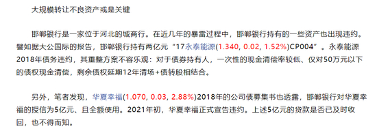 邯郸银行持有的一些资产也出现过违约。