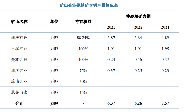 云南铜业介绍:2023年,公司精矿含铜产量按合并报表口径统计为6.37万吨,同比增长1.76%;按权益量统计为6.51万吨,同比增长1.09%。