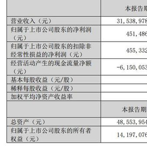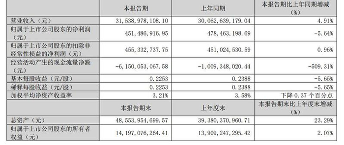 云南铜业4月26日晚间披露一季报,公司2024年一季度实现营业收入315.39亿元,同比增长4.91%;净利润4.51亿元,同比下降5.64%。