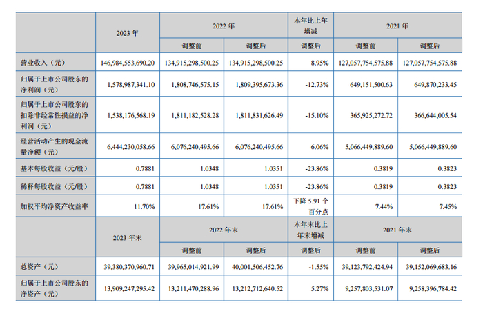 云南铜业此前发布的2023年年报显示,2023年实现营业收入1469.85亿元,同比增长8.95%;净利润15.79亿元,同比下降12.73%;基本每股收益0.79元。公司拟每10股派发现金红利3元(含税)。