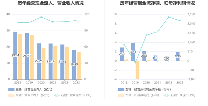 2023年,公司营业收入现金比为109.03%,净现比为2213.28%。