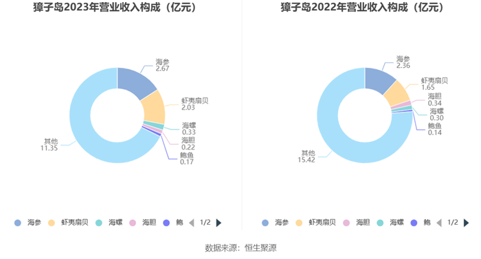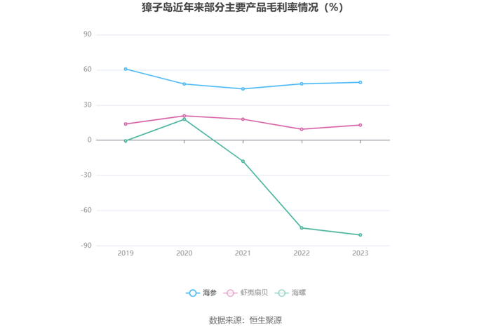 分产品看,海参、虾夷扇贝、海螺2023年毛利率分别为49.34%、12.94%、-80.72%。