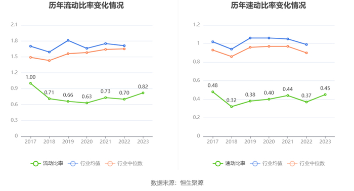 2023年,公司流动比率为0.82,速动比率为0.45。