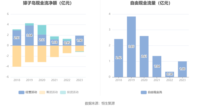 进一步统计发现,2023年公司自由现金流为1.00亿元,相比上年同期增长190.50%。