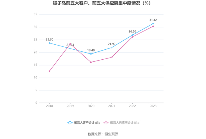 报告期内,公司前五大客户合计销售金额5.27亿元,占总销售金额比例为31.42%,公司前五名供应商合计采购金额3.14亿元,占年度采购总额比例为30.34%。