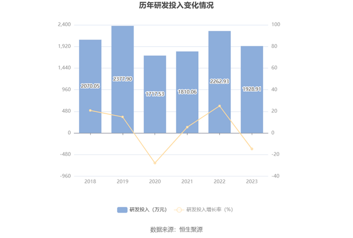 2023年全年,公司研发投入金额为1928.91万元,同比下降14.76%;研发投入占营业收入比例为1.15%,相比上年同期上升0.03个百分点。此外,公司全年研发投入资本化率为0。