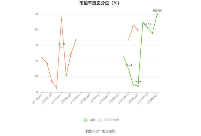 市盈率为负时,不显示当期分位数,会导致折线图中断。