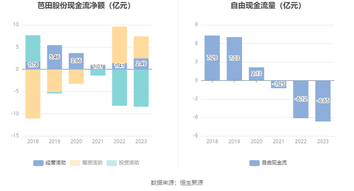 进一步统计发现,2023年公司自由现金流为-6.65亿元,上年同期为-6.12亿元。