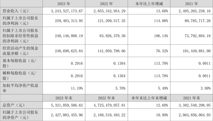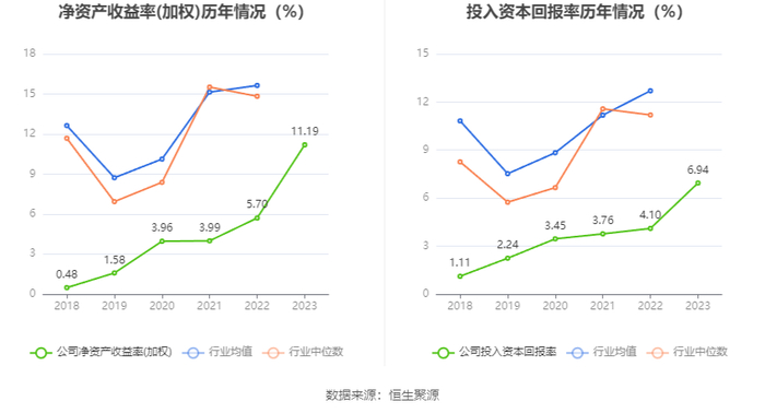 数据显示,2023年公司加权平均净资产收益率为11.19%,较上年同期增长5.49个百分点;公司2023年投入资本回报率为6.94%,较上年同期增长2.84个百分点。