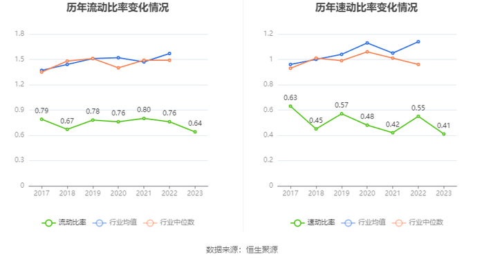 2023年,公司流动比率为0.64,速动比率为0.41。