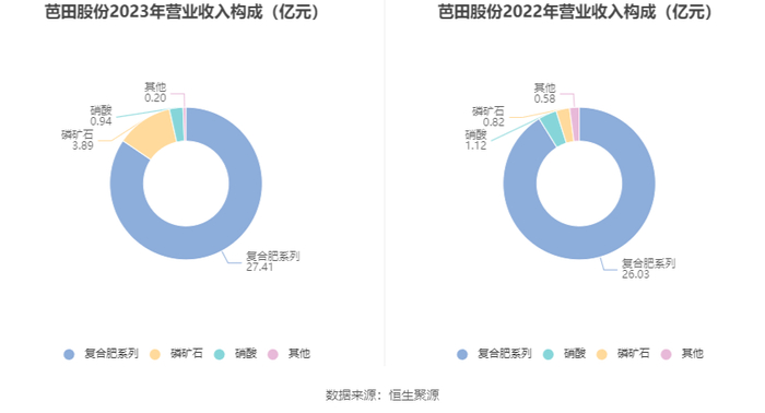 分产品看,复合肥系列、磷矿石、硝酸2023年毛利率分别为15.05%、76.08%、29.41%。